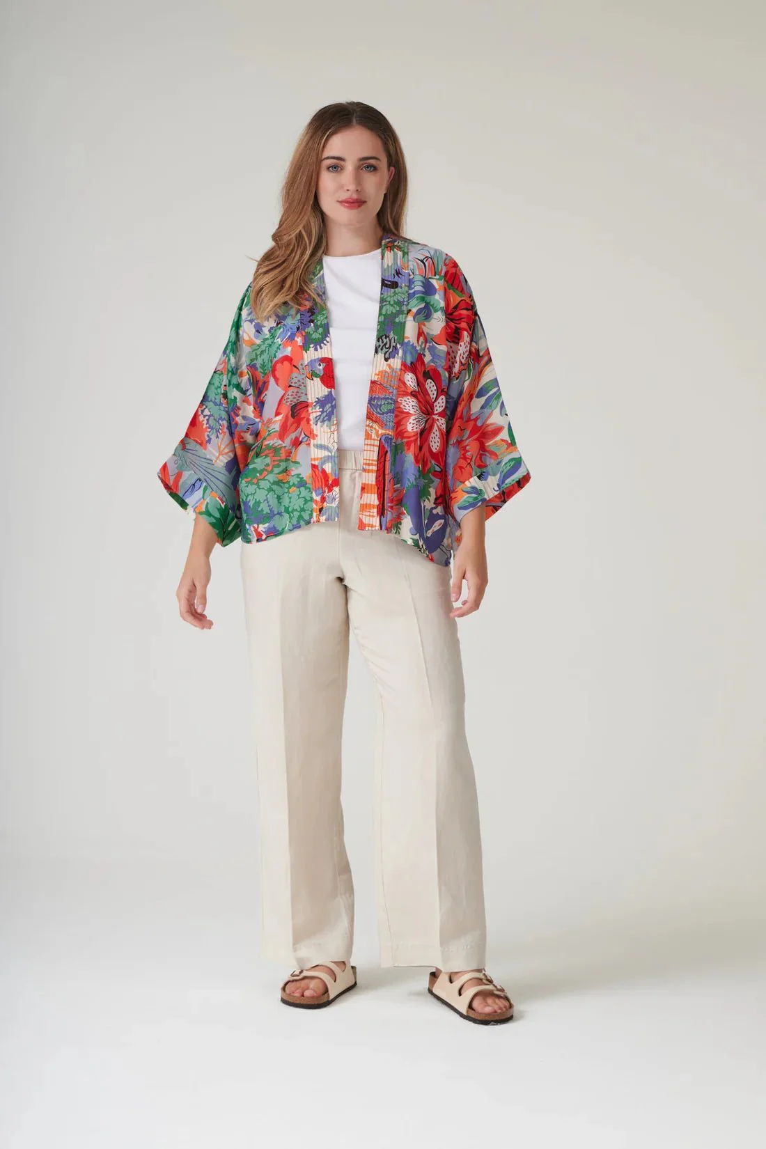 Our bestselling kimono jackets have loose ¾ length sleeves, an open front and a lightly embroidered lapel. Pair with a matching camisole and your favourite jeans in summer or layer over a polo neck during the cooler months.